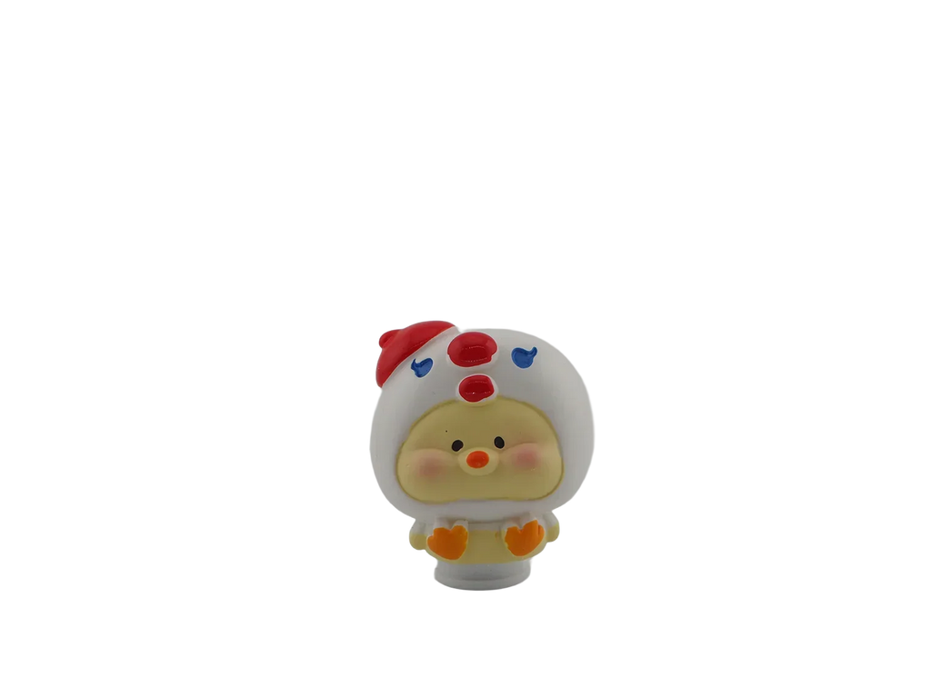 Yellow Chicken in Snowman Costume with Red Hat Topper