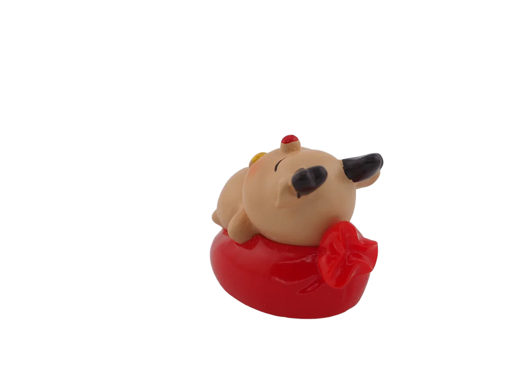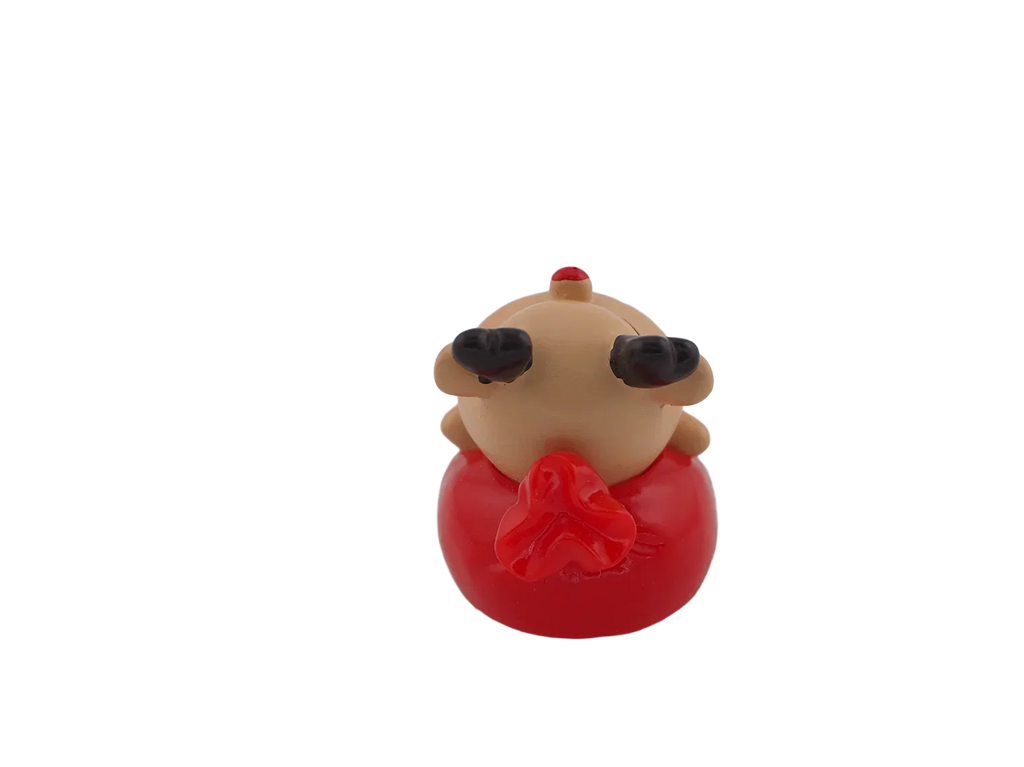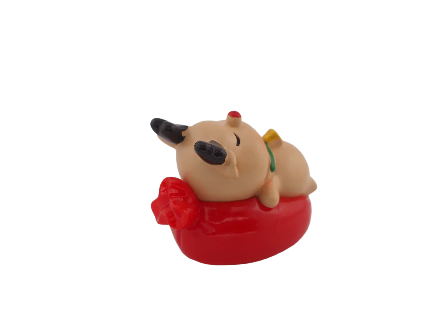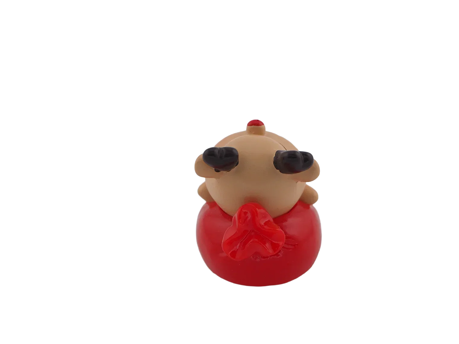 This reindeer rests peacefully on a bright red bag of gifts. Perfect for cozy winter scenes.