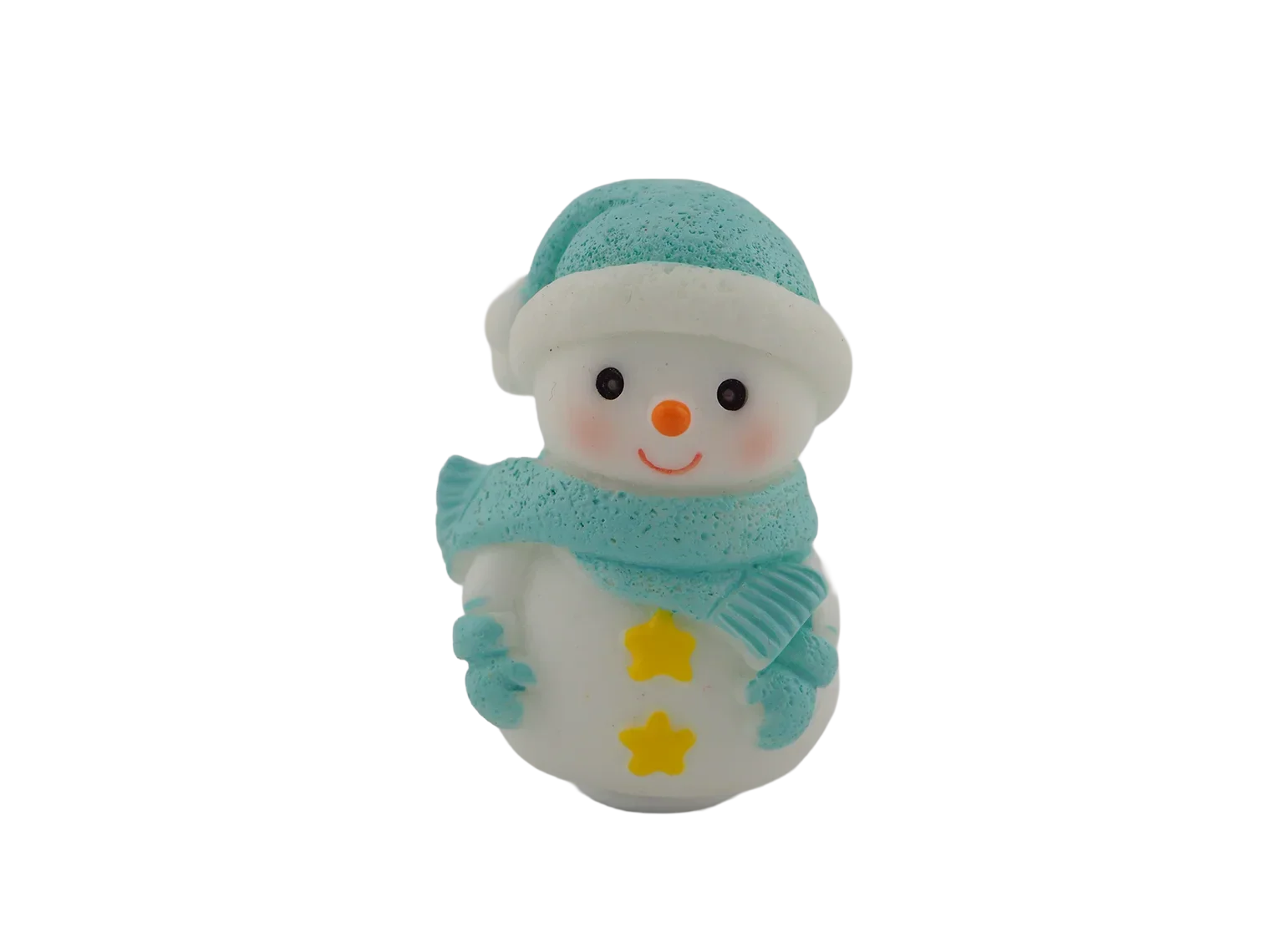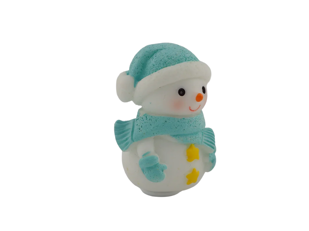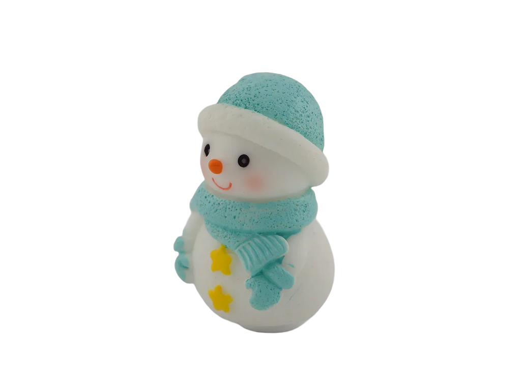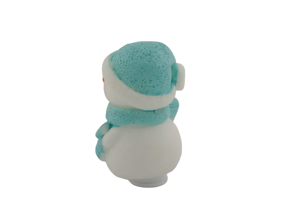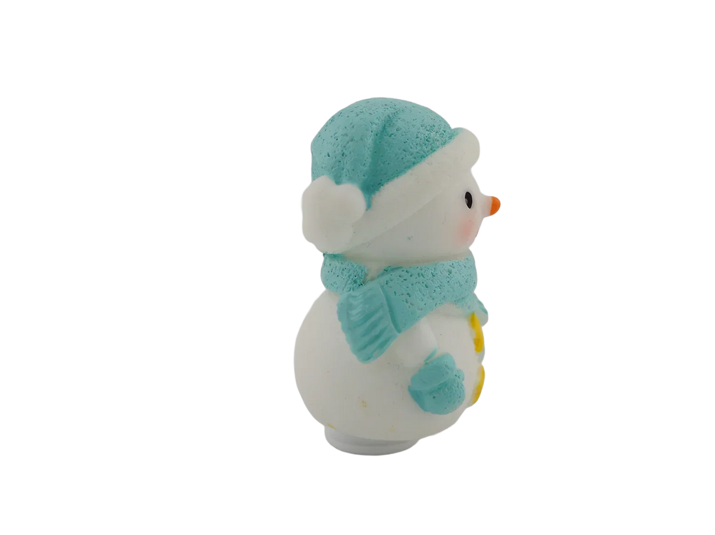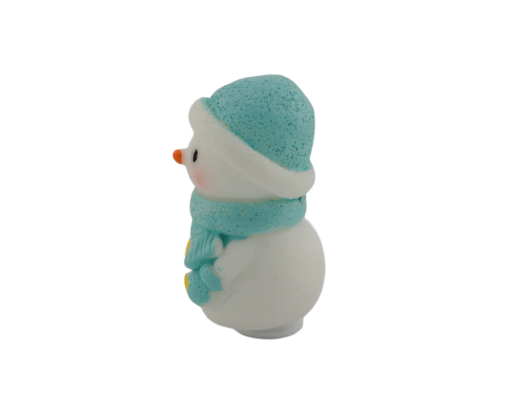 A cheerful snowman bundled up in a cozy blue hat and scarf. A wintertime classic for any décor.