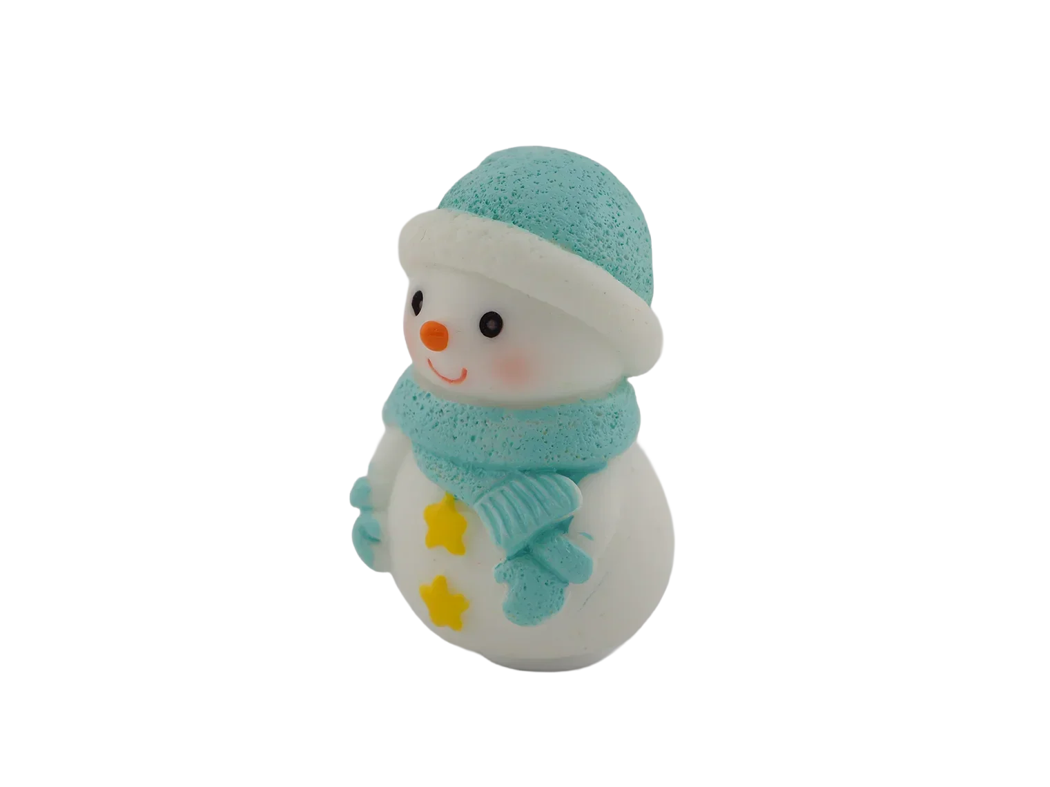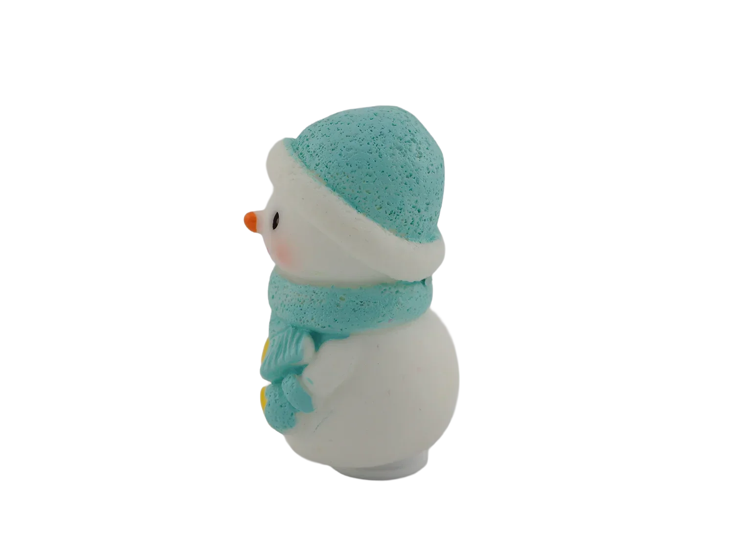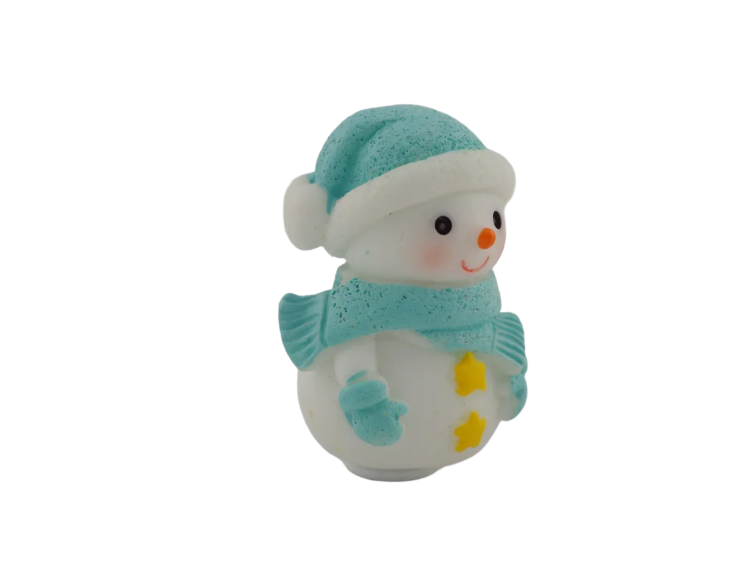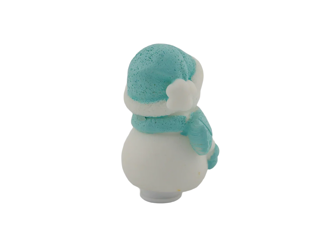 A cheerful snowman bundled up in a cozy blue hat and scarf. A wintertime classic for any décor.