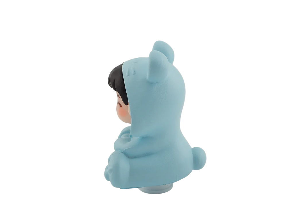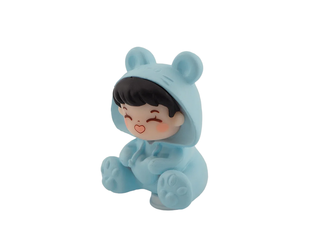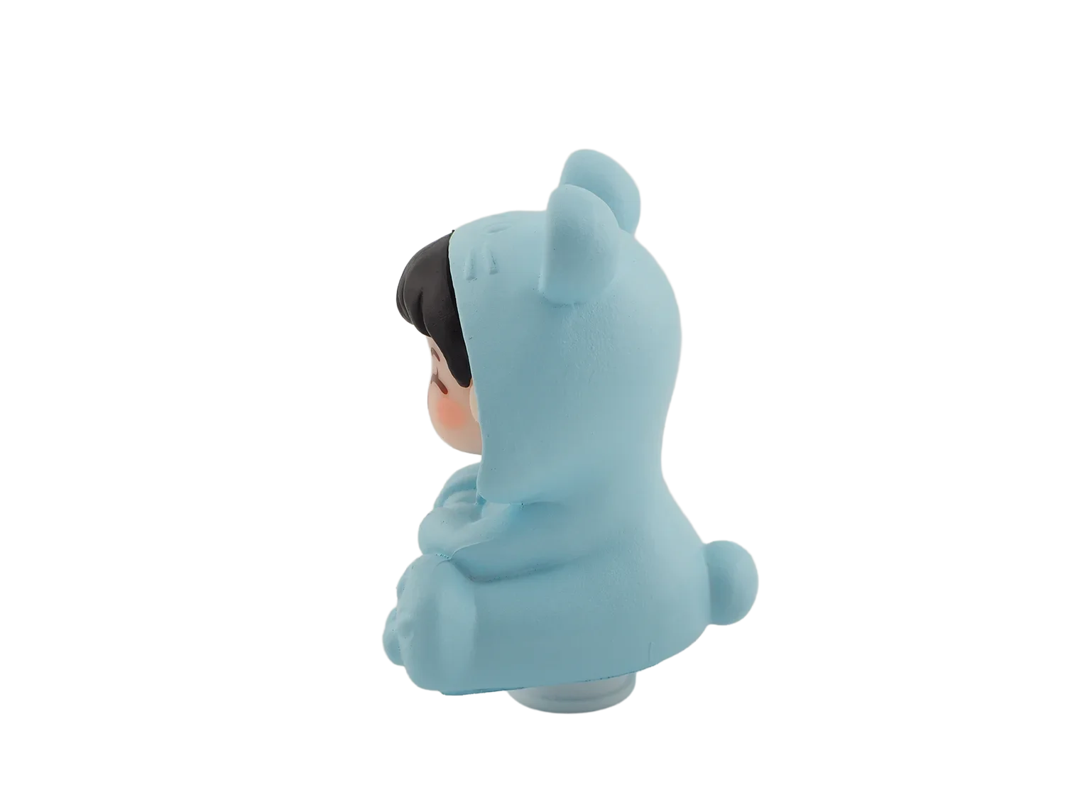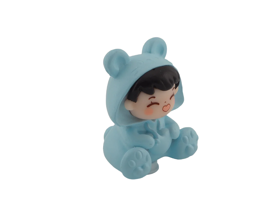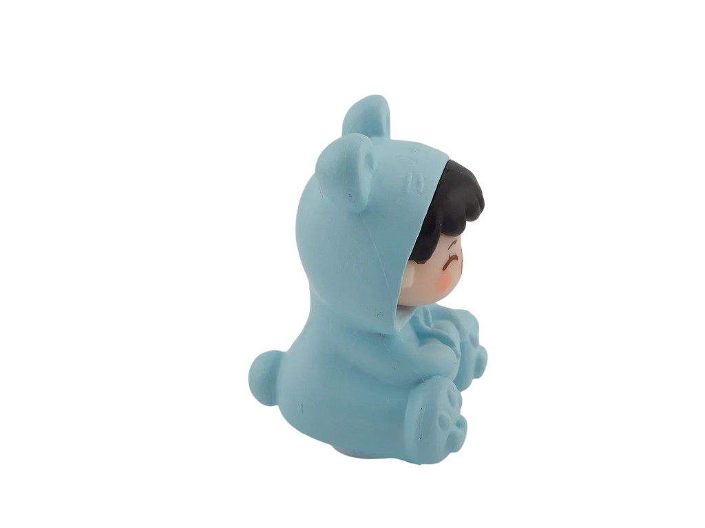 Top off your favorite hat with our charming 'Boy in Blue PJ Topper'. This delightful topper features a miniature figure of a boy in blue pajamas, adding a touch of whimsy to your everyday style. A unique accessory for men and a great conversation starter, this topper easily attaches to your hat for a personalized look. Show off your playful side with this fun and expressive piece.