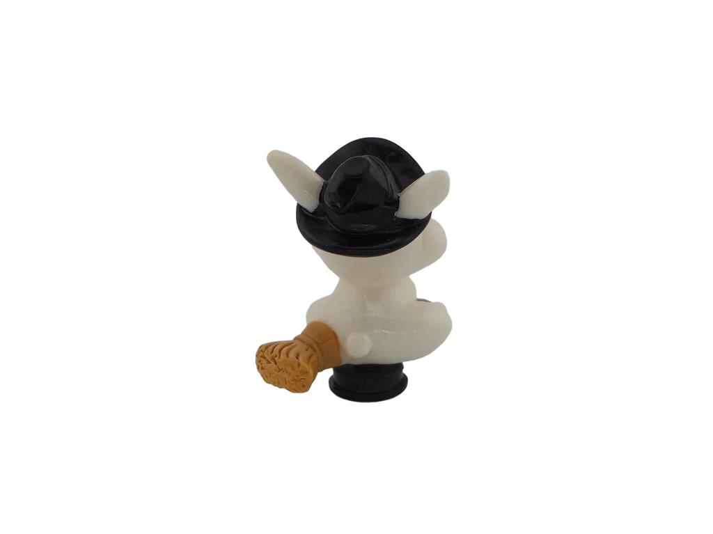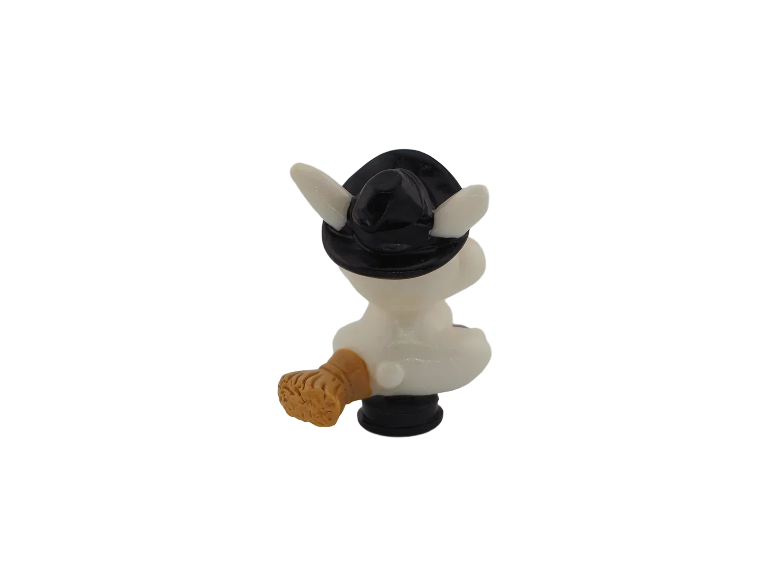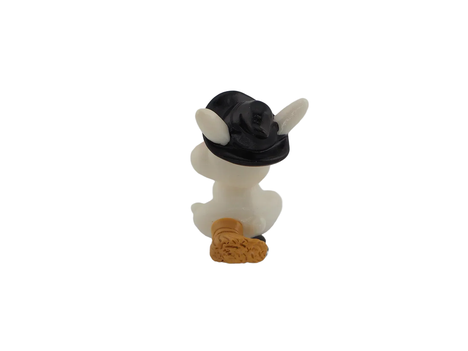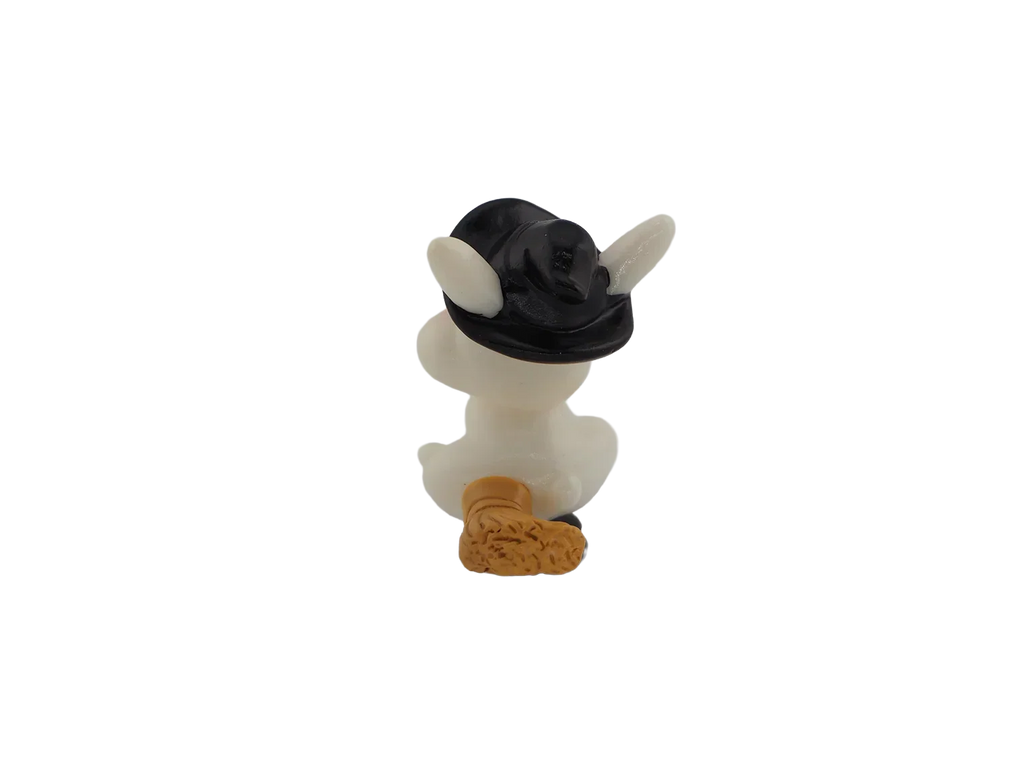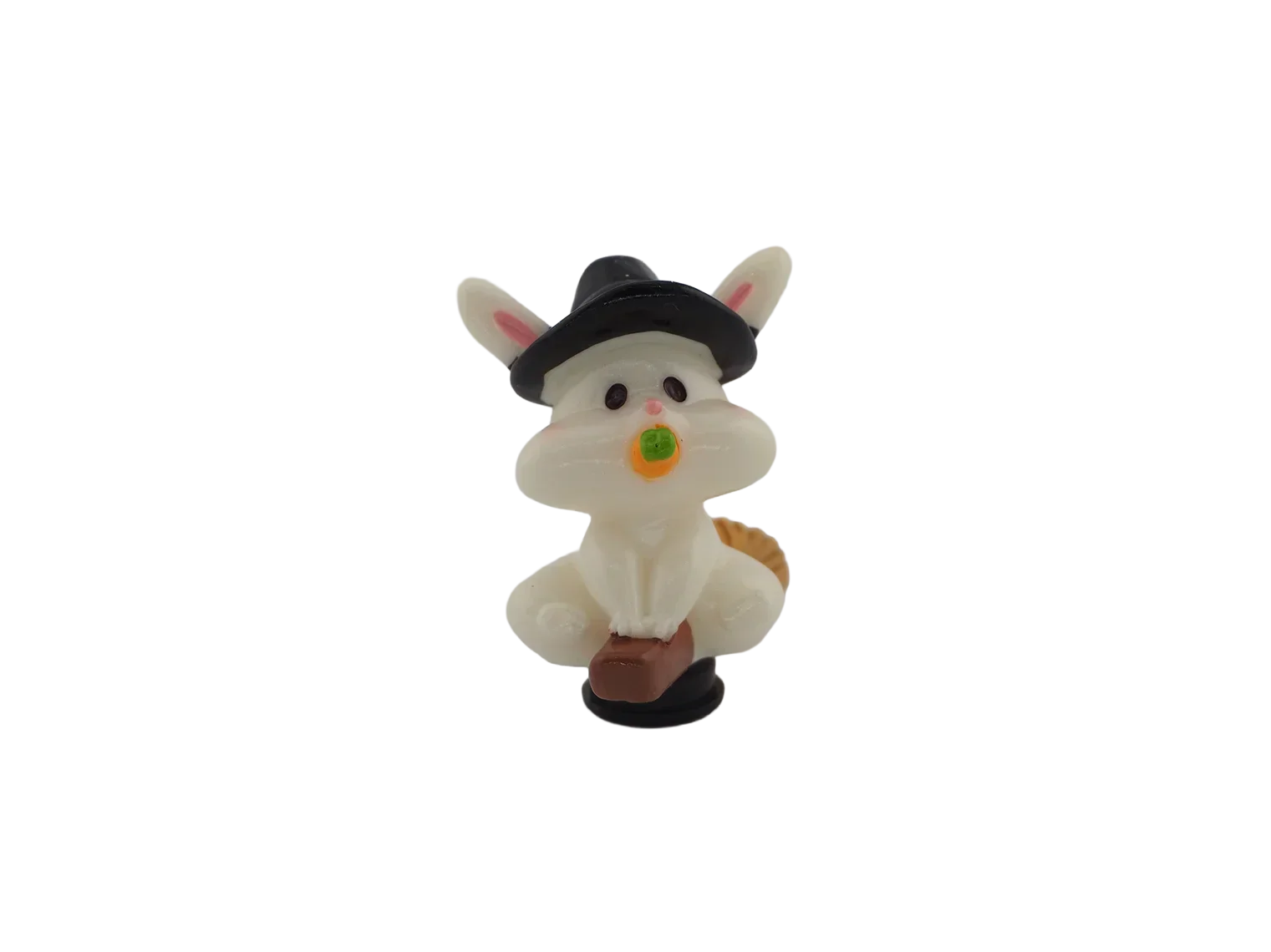A bunny holding a carrot while wearing a witch hat. Adds whimsical Halloween fun to your décor.