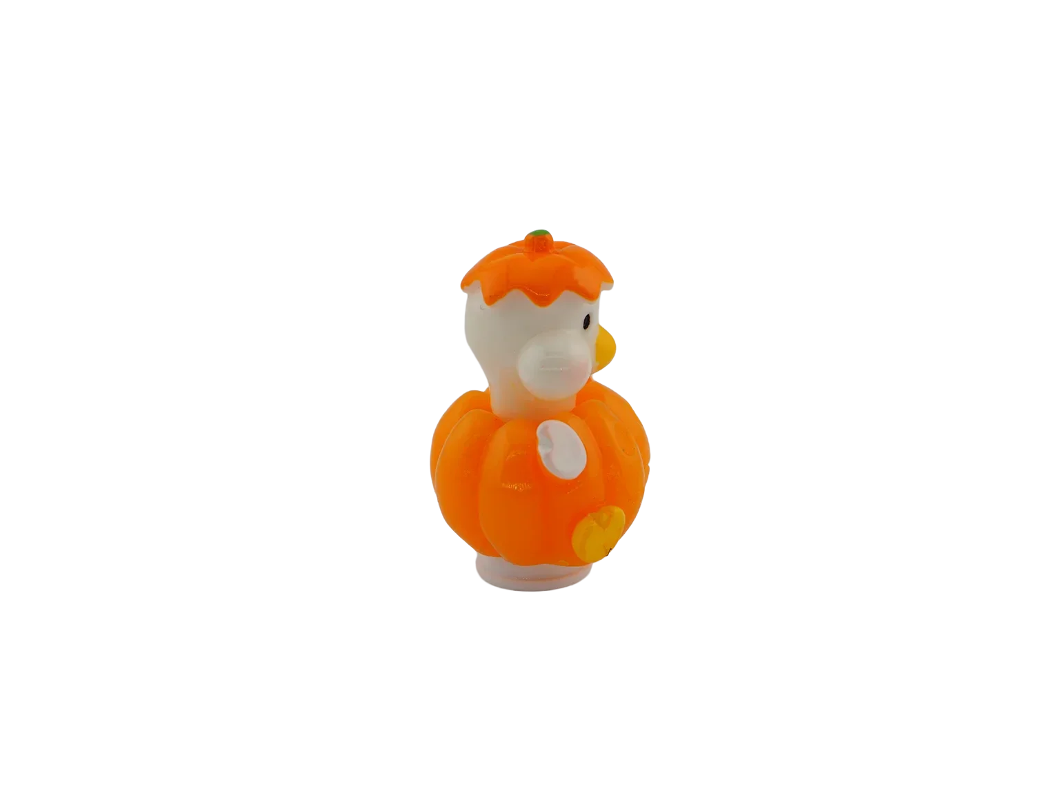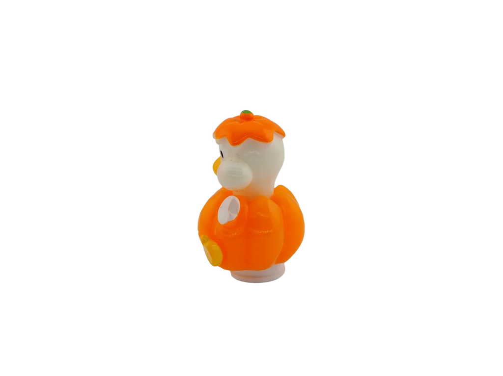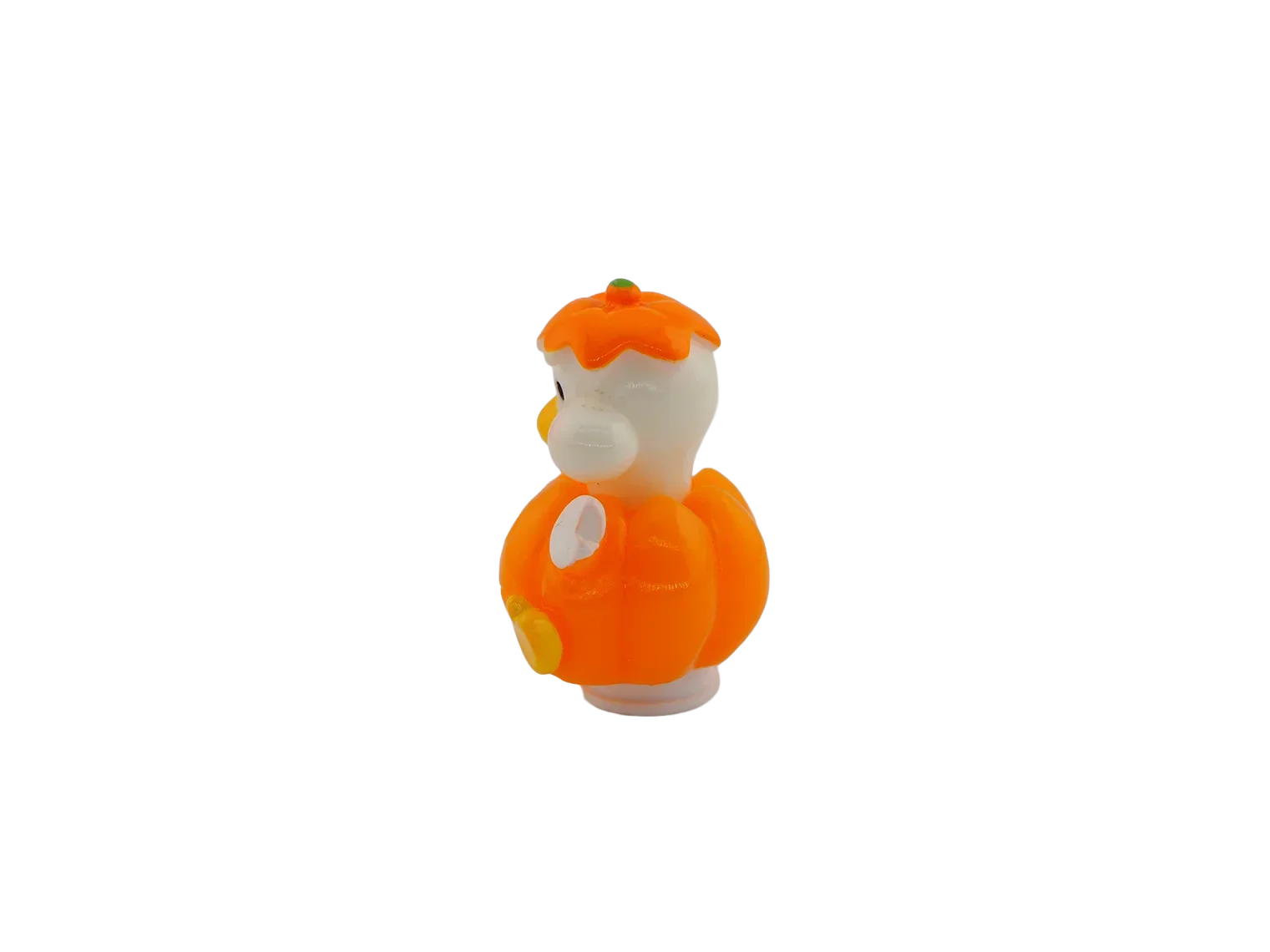 A happy duck pops out of a bright orange pumpkin. A perfect fall or harvest decoration.