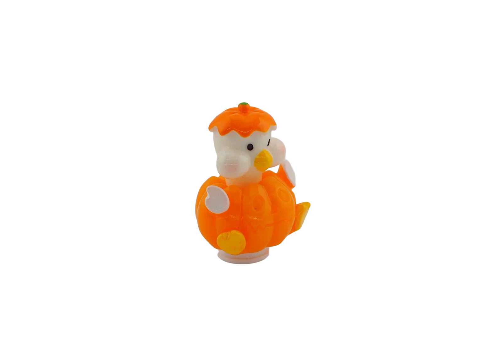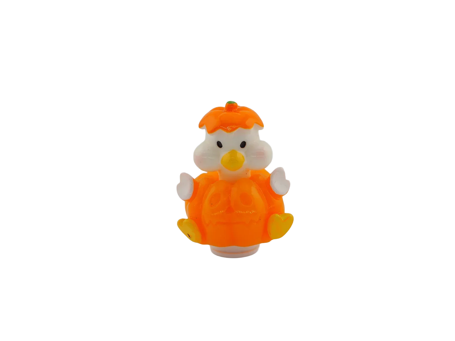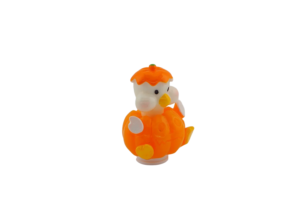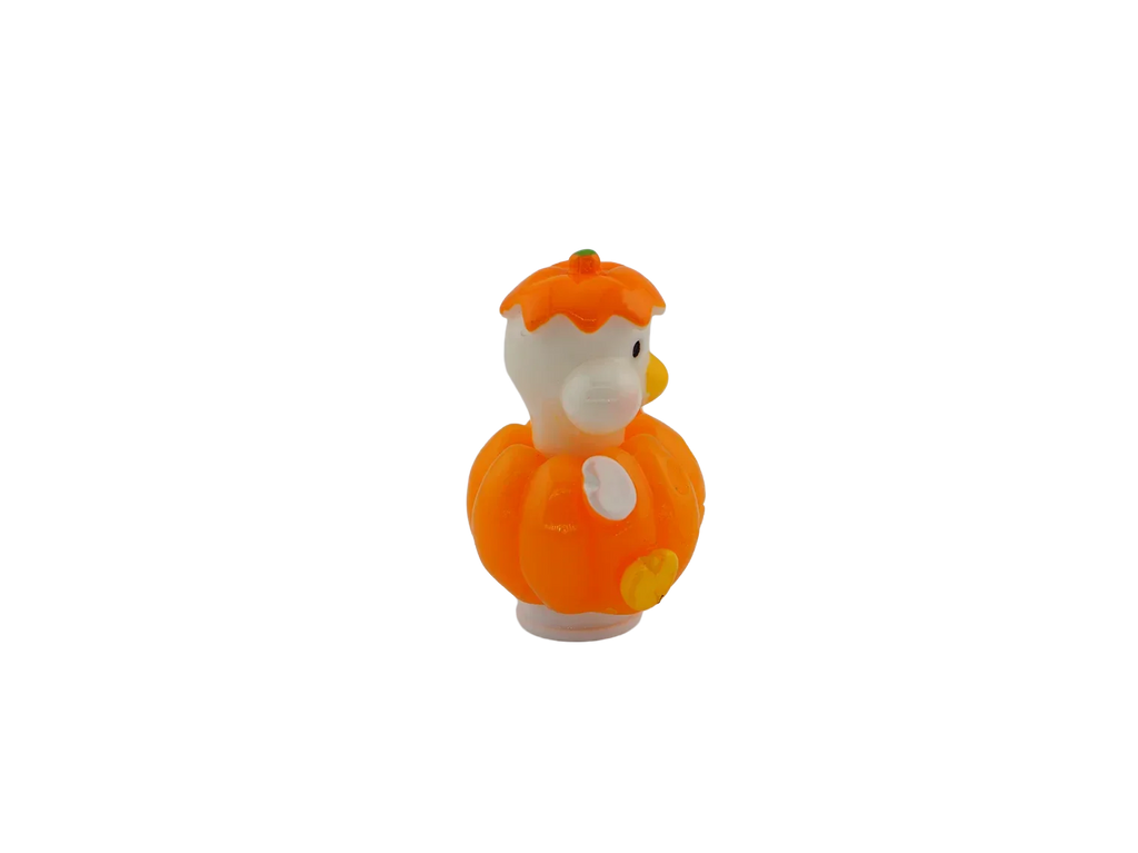 A happy duck pops out of a bright orange pumpkin. A perfect fall or harvest decoration.