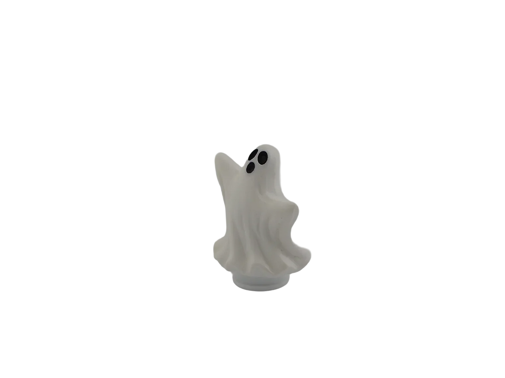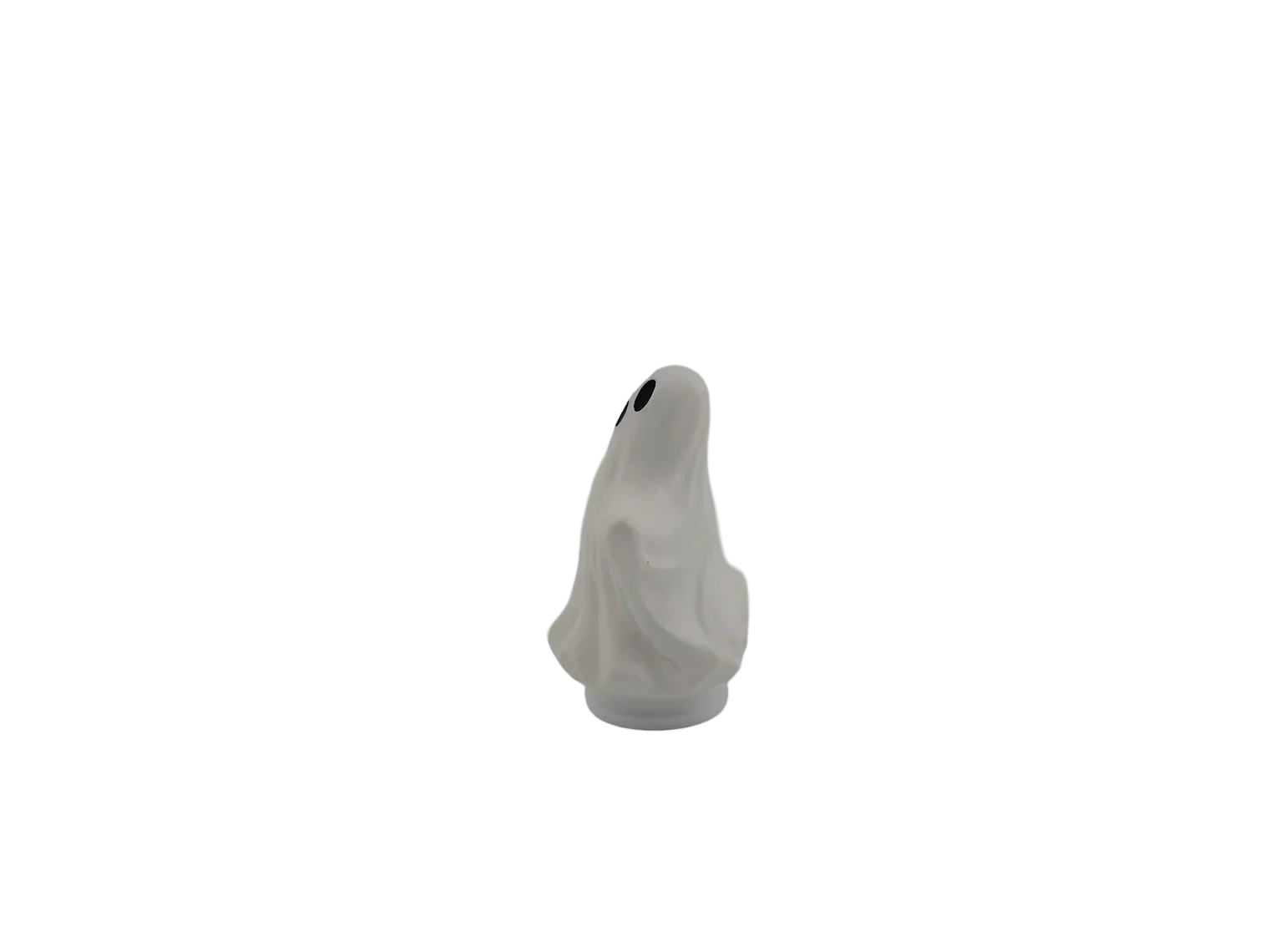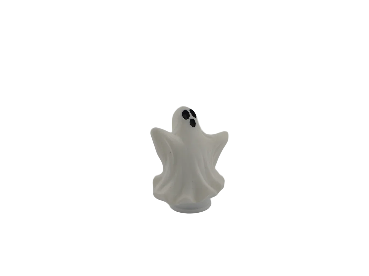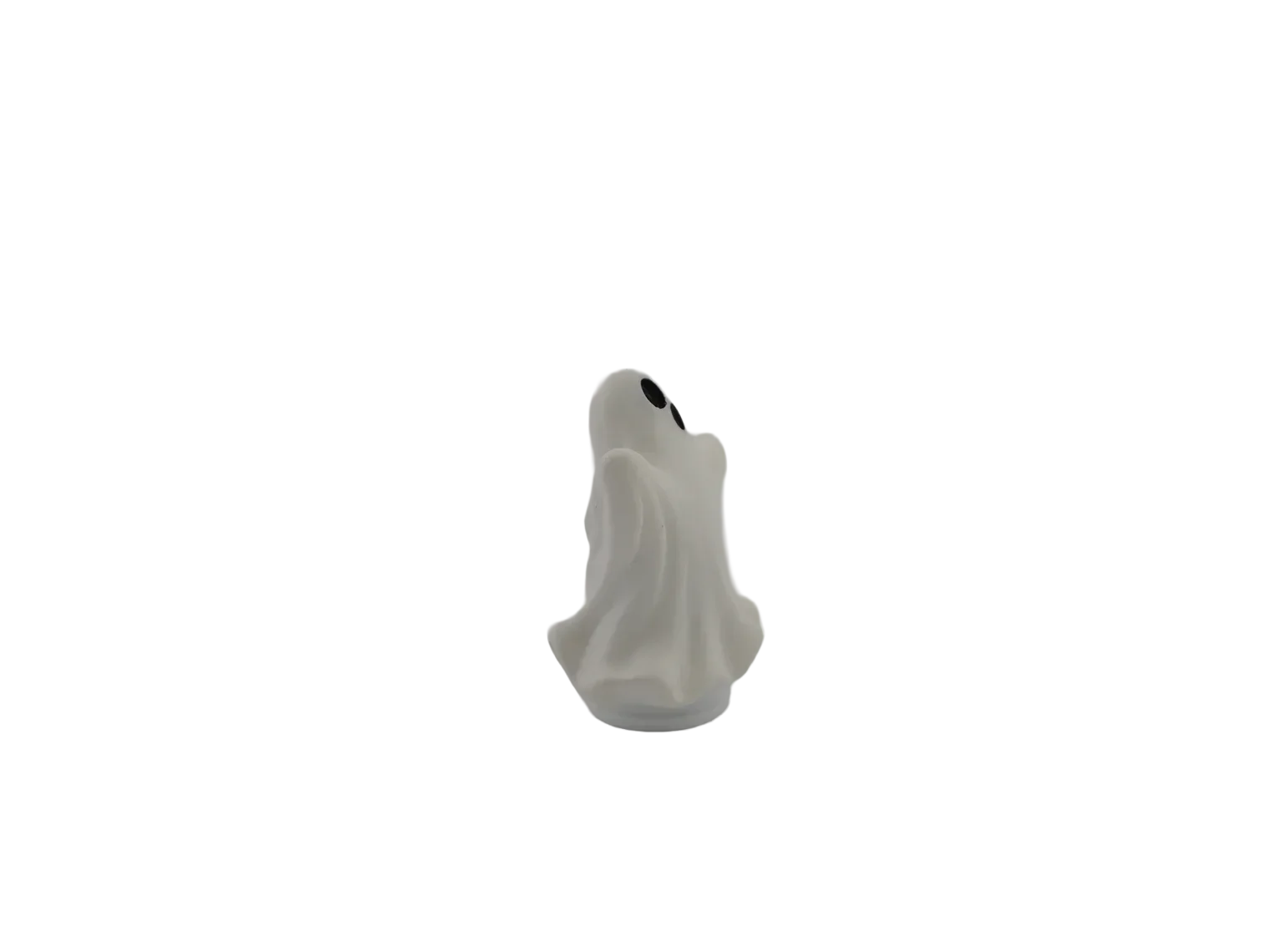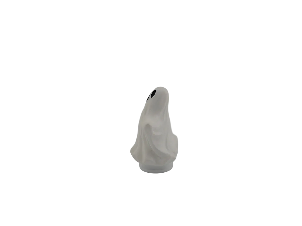 A charming ghost adorned with a red bow. A sweet mix of spooky and cute for seasonal décor.