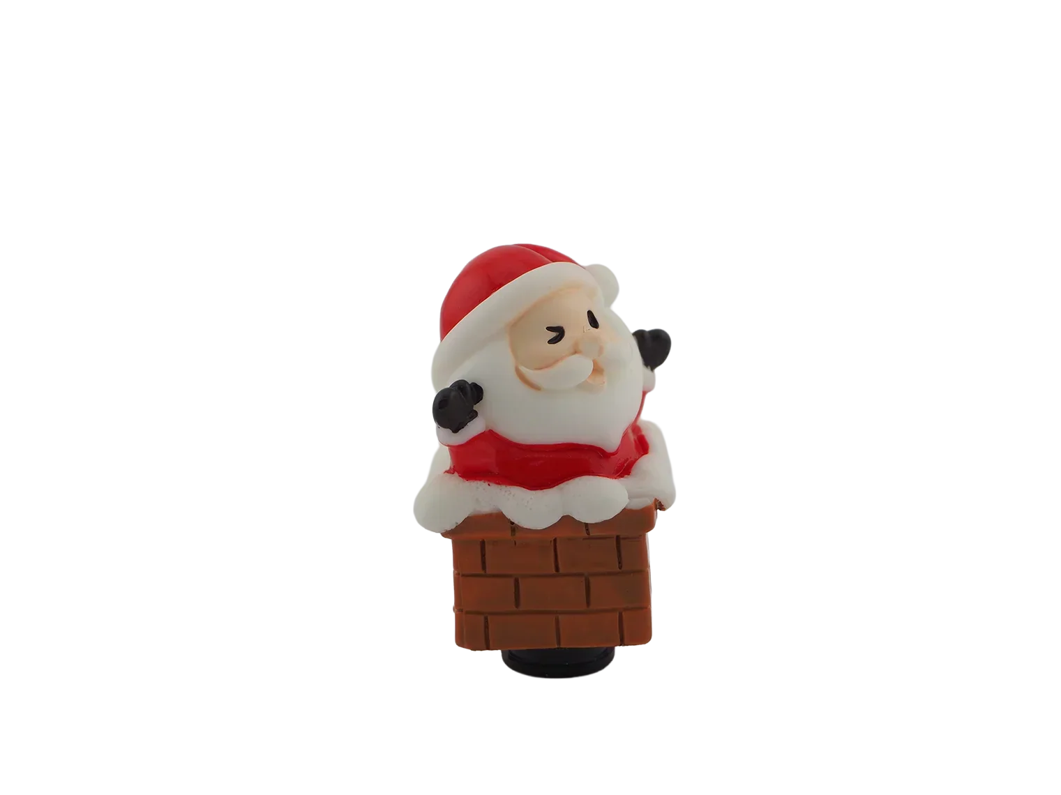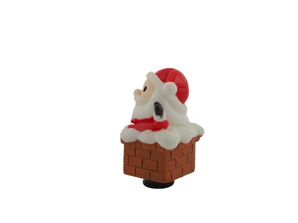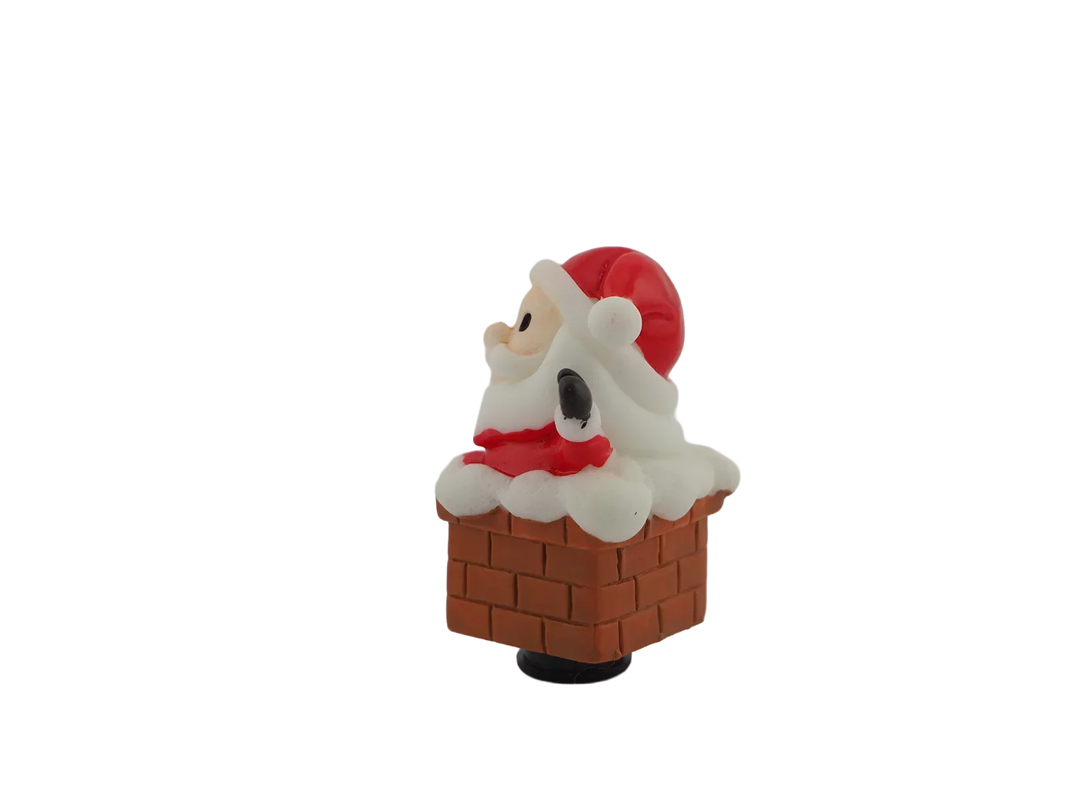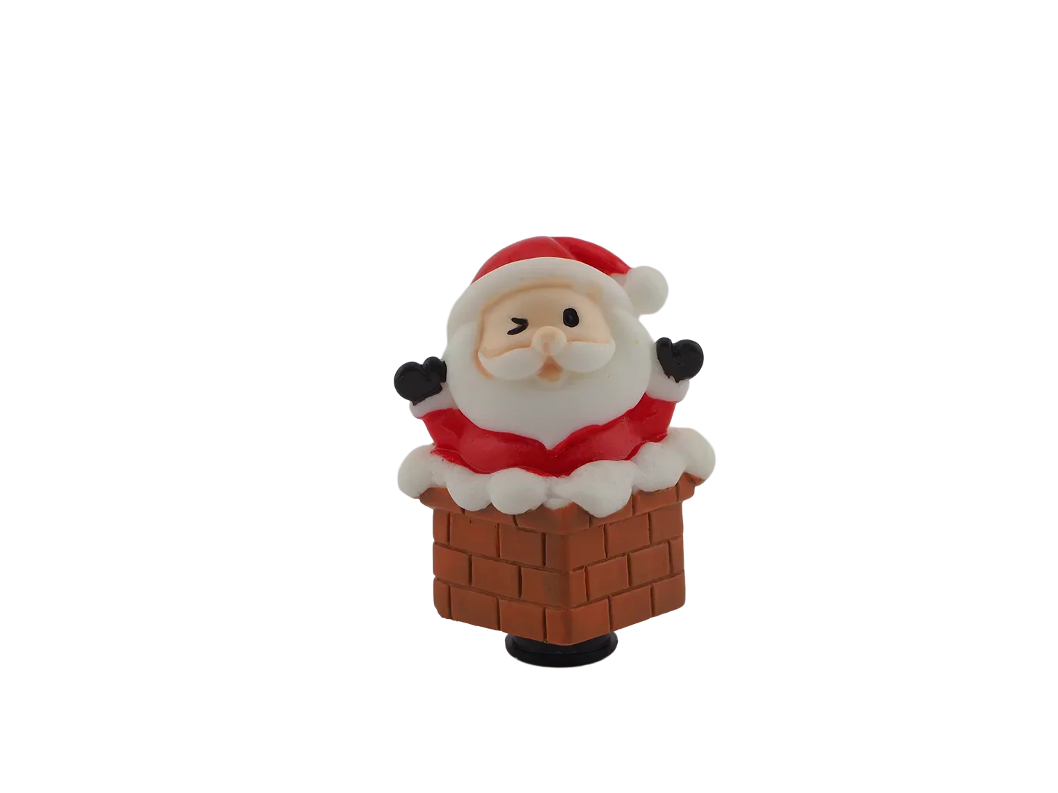 A smiling Santa pops out of the chimney to say hello. Perfect for playful winter displays.