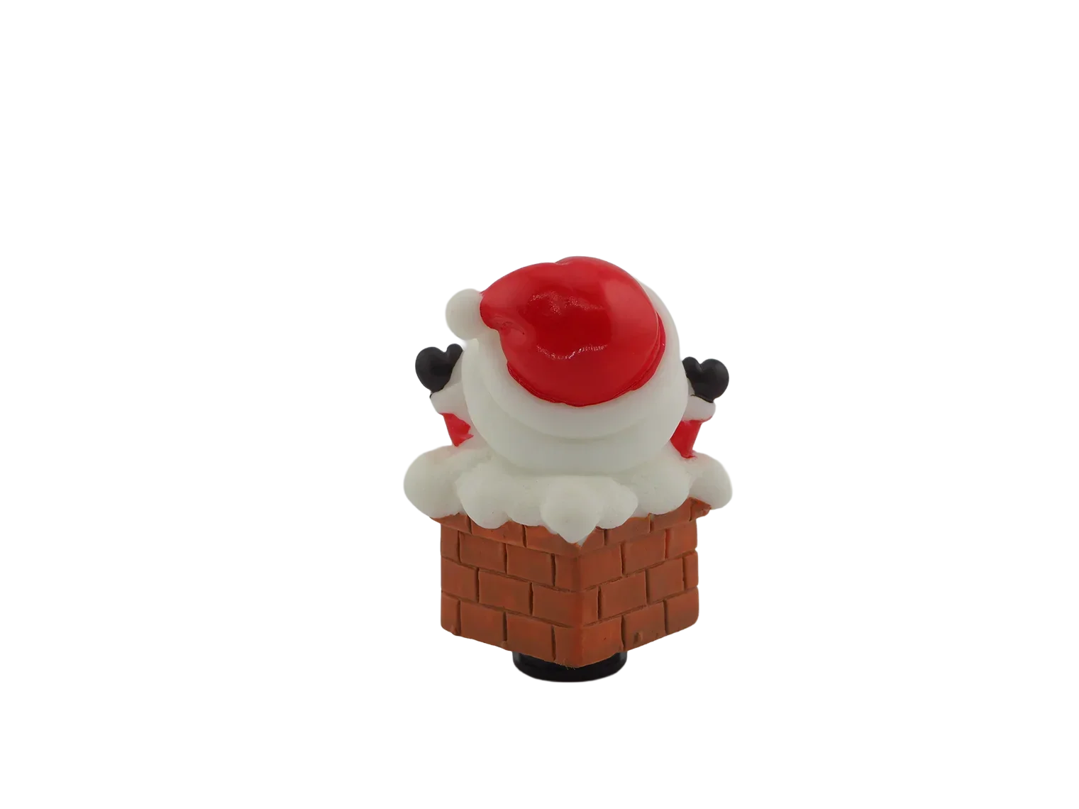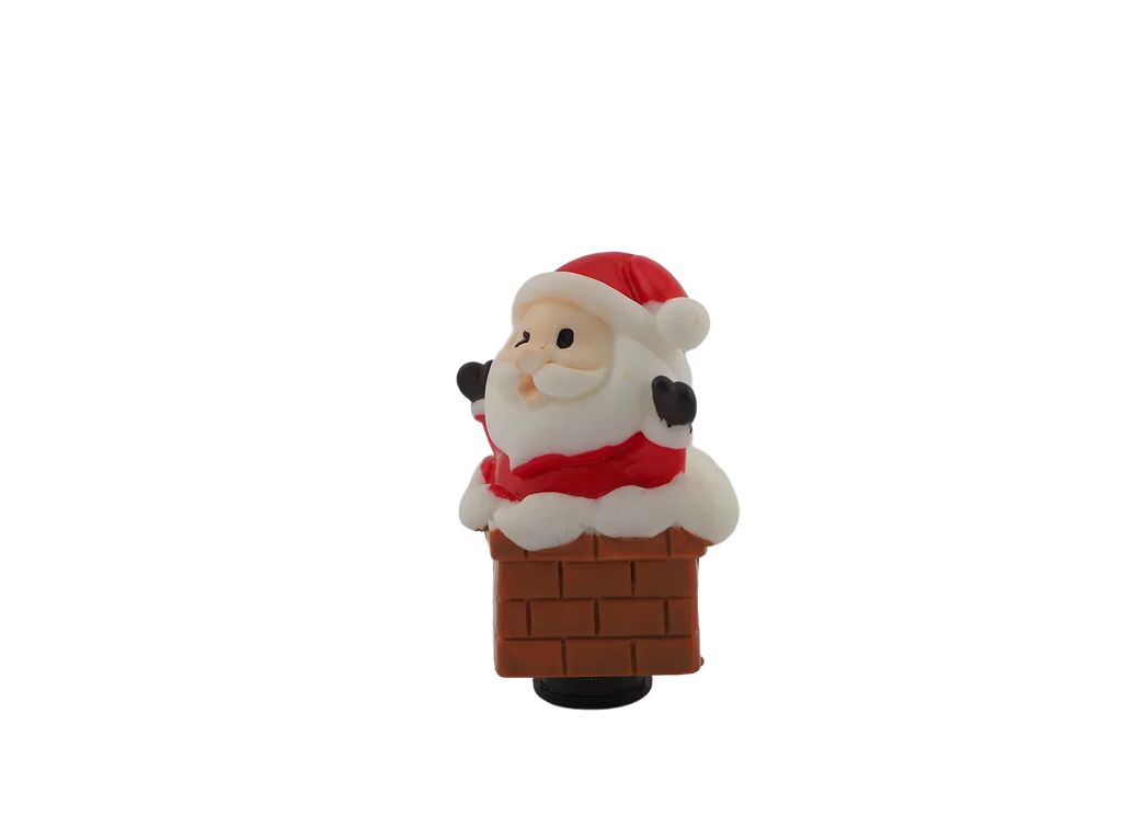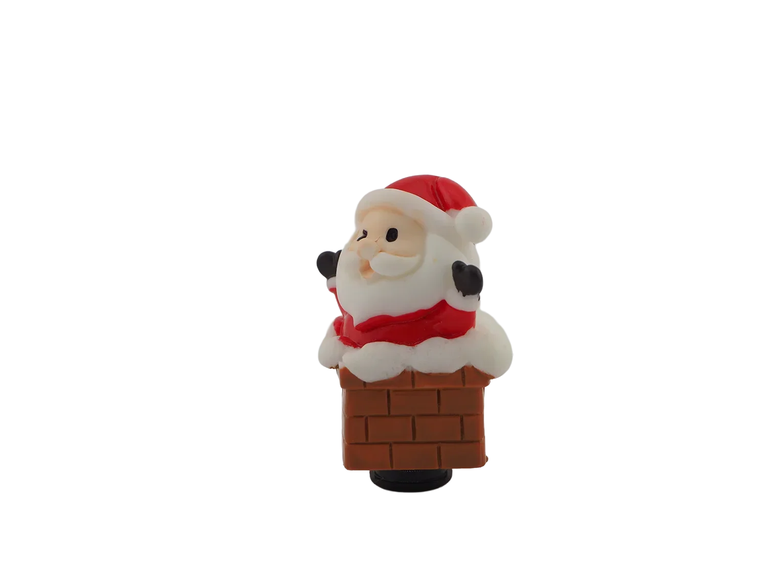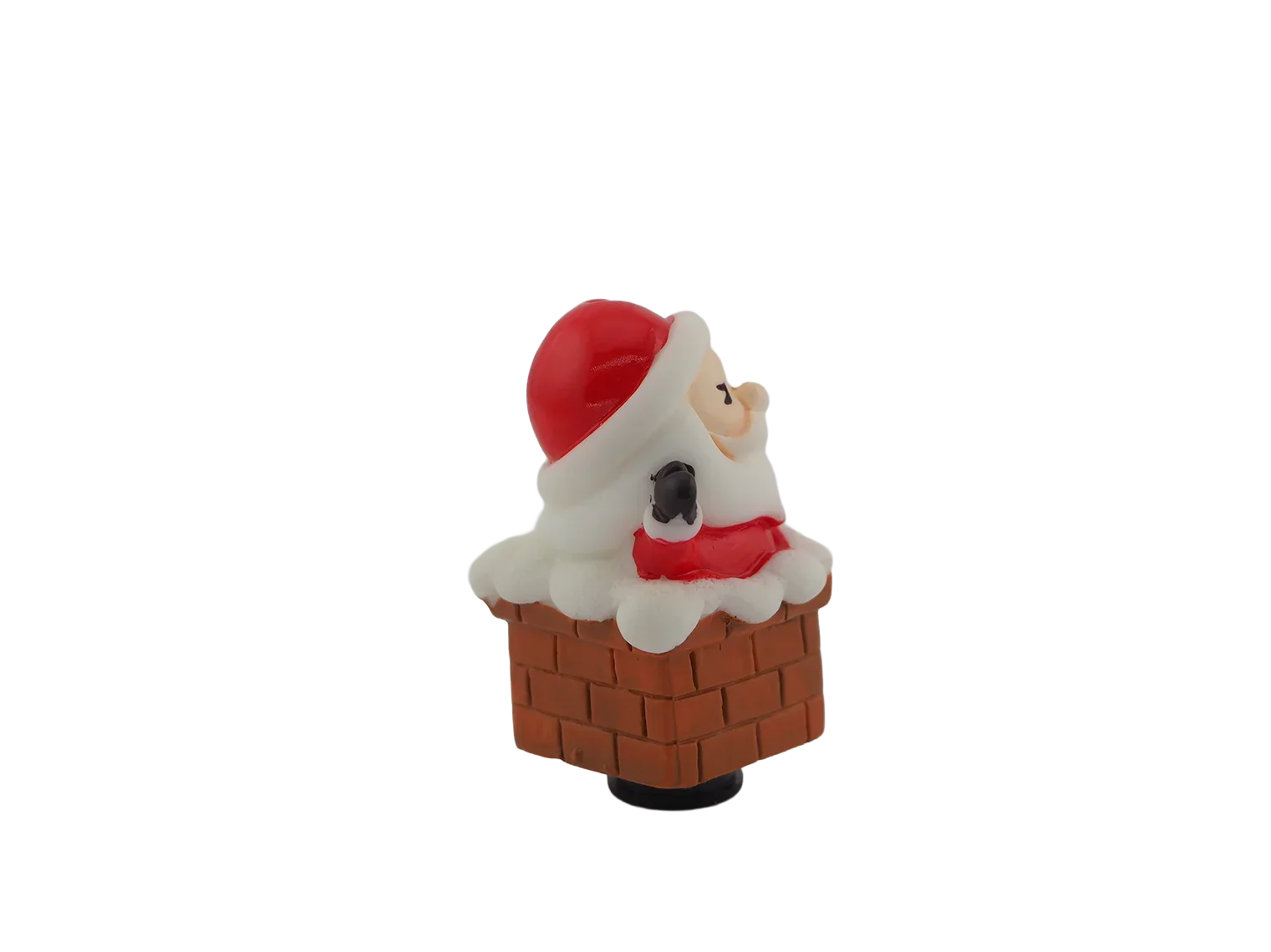 A smiling Santa pops out of the chimney to say hello. Perfect for playful winter displays.
