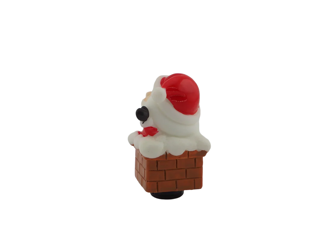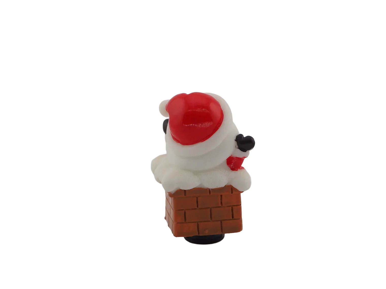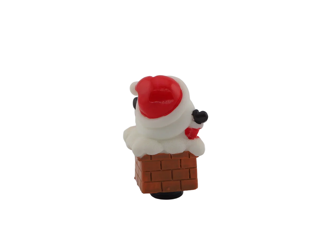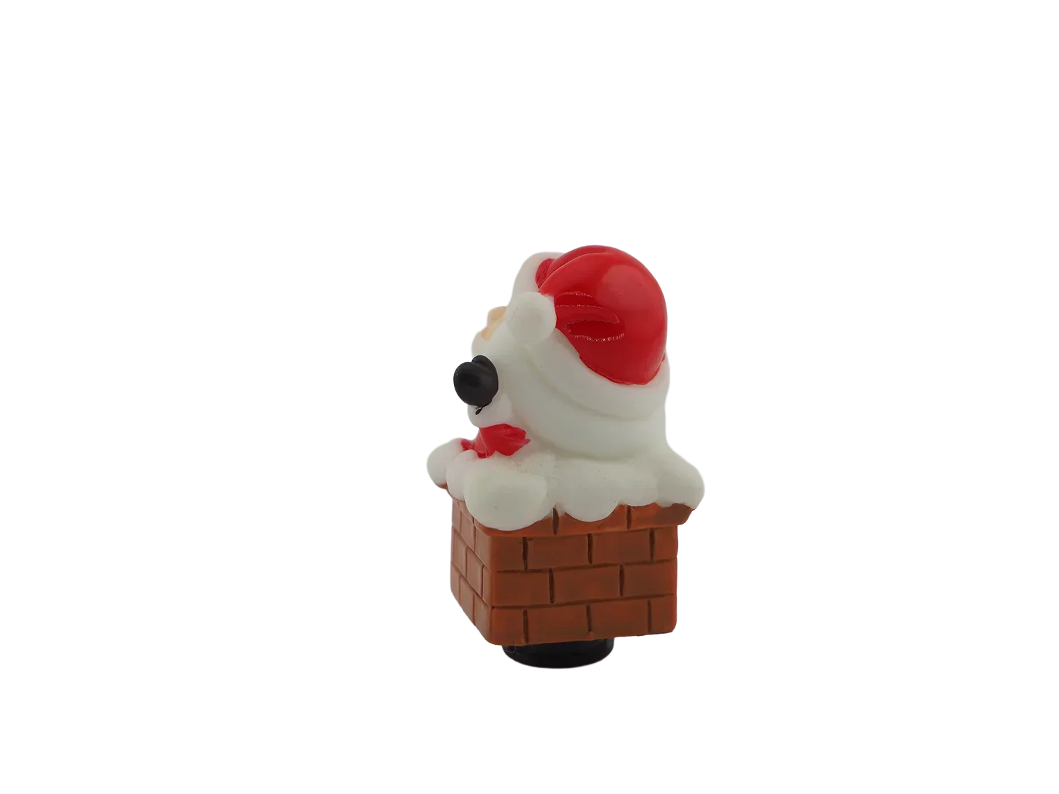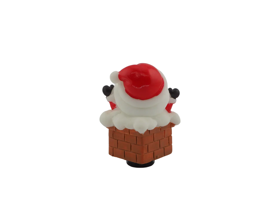 A smiling Santa pops out of the chimney to say hello. Perfect for playful winter displays.