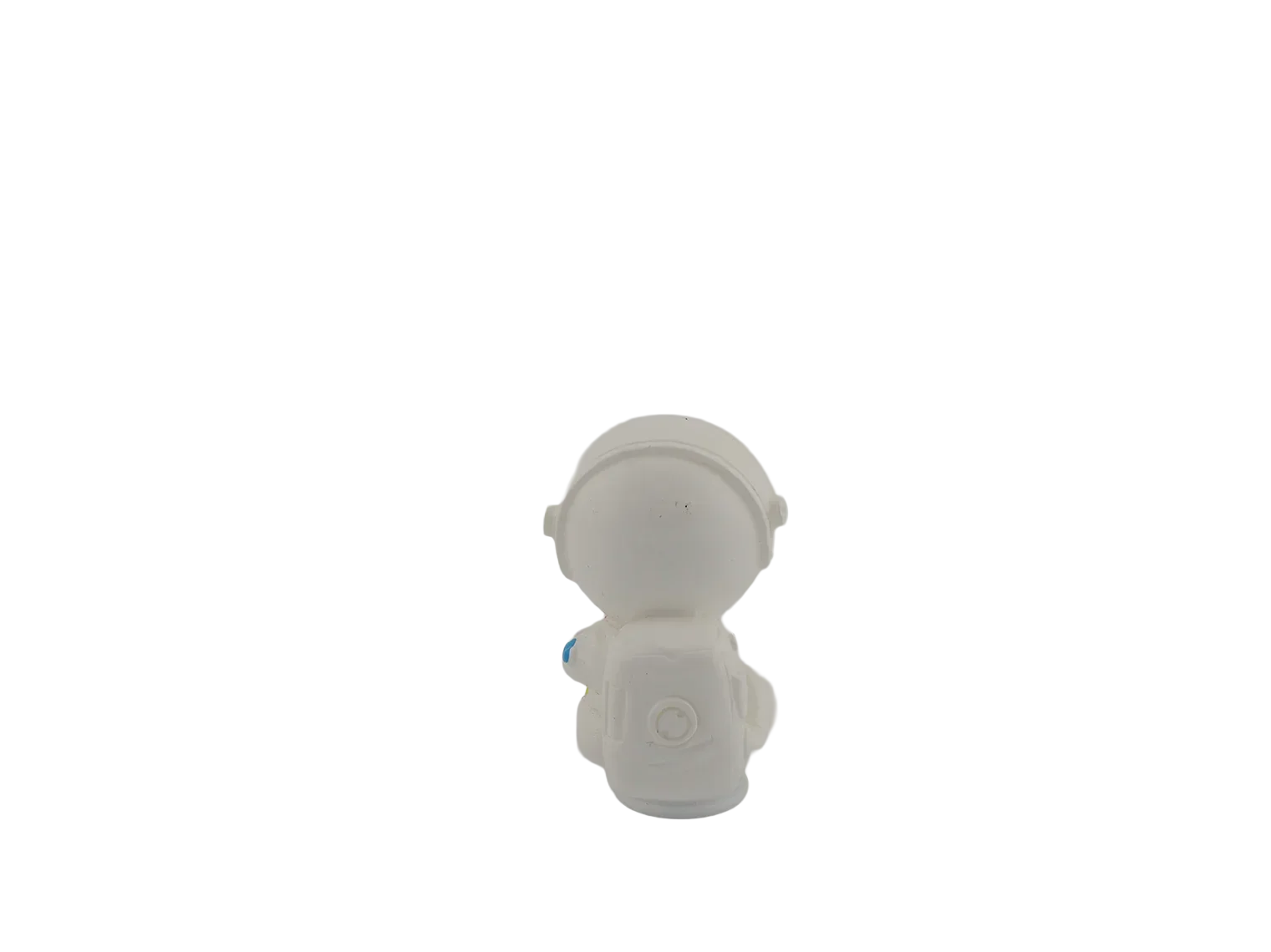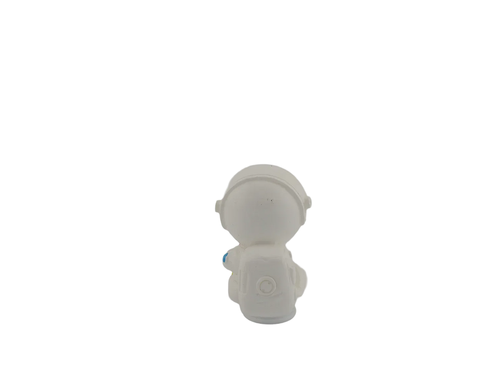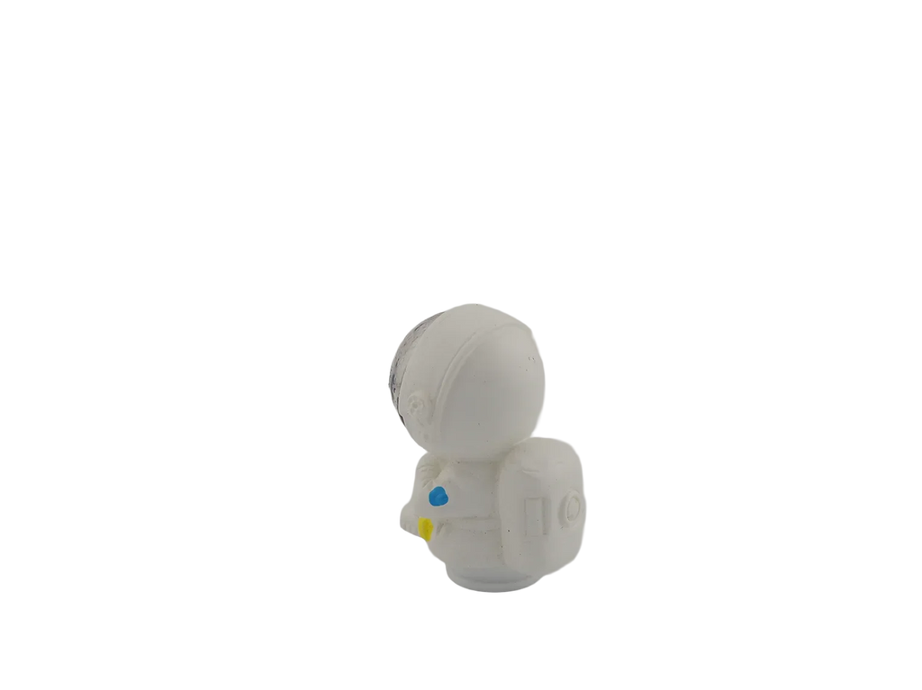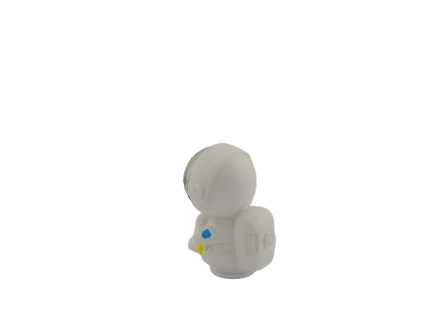 A calm astronaut resting with hands on knees. A peaceful piece that complements any cosmic theme.